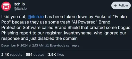 What the absolute fuck? itch.io is fucking massive, how did the registar just treat them like this? goddamn!