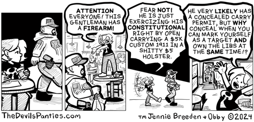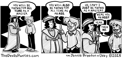 Pre-internet I drew the batman logo on my shirt in college comics. Then in 2000 when someone suggested I put my comic strips on the internet, I figured a copyrighted symbol wasn’t the best idea for branding, so I adjusted the batman logo to look more like a labrys. Which is why early comics the handle is more like a batman tail.