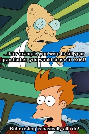 But Fry is his own grandfather, so if he kills himself, he will cease to exist?