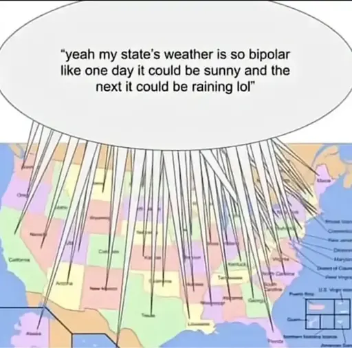 People say it abt New England, Great Lakes, the South, the Midwest. Literally everywhere I’ve lived, if you don’t like the weather… wait.