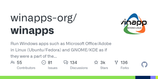 arrow-up1349external-linkGitHub - winapps-org/winapps: Run Windows apps such as Microsoft Office/Adobe in Linux (Ubuntu/Fedora) and GNOME/KDE as if they were a part of the native OS, including Nautilus integration.github.comfossilesque@mander.xyz to Linux@lemmy.mlEnglish · 4 months agomessage-square94linkfedilinkcross-posted to: [email protected]