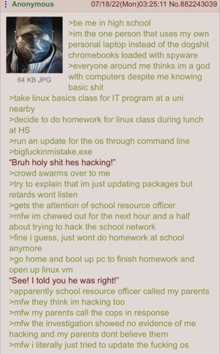 individual@toast.ooo to linuxmemes@lemmy.world · 3 months agoAnon updates GNU/linuxlemmy.worldimagemessage-square64linkfedilinkarrow-up1527file-text