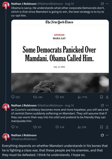 Weak willed liars fold at a price because they were always in it for the money. Some people want change will be damned if they are obstructed. The way Mamdani talks about our problems and then correctly lays out a systemic solution has sold me on him being genuine. He’s an incredible person who is poised to change the American political landscape.