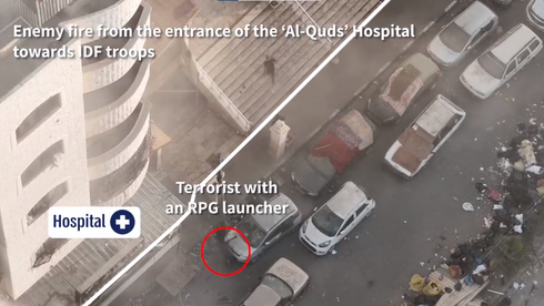 Terrorist cell embedded itself within civilians around Al-Quds Hospital, fired from the hospital entrance at IDF soldiers, and was subsequently eliminated