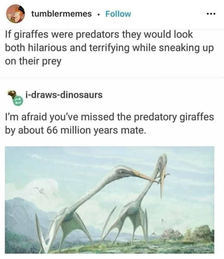 fossilesque@mander.xyzM to Science Memes@mander.xyzEnglish · 22 days agopredatory giraffesmander.xyzimagemessage-square36linkfedilinkarrow-up1626