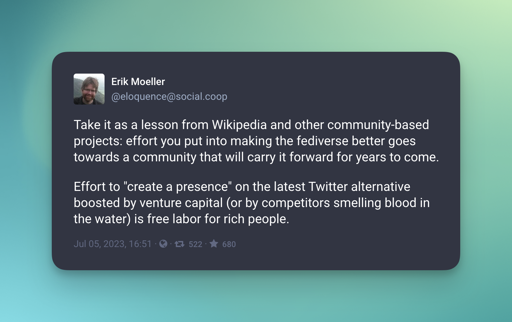 HiramFromTheChi@lemmy.world to Fediverse@lemmy.worldEnglish · 2 years agoBuilding the fediverse is an investment in us and the open web.lemmy.worldimagemessage-square3linkfedilinkarrow-up15file-text