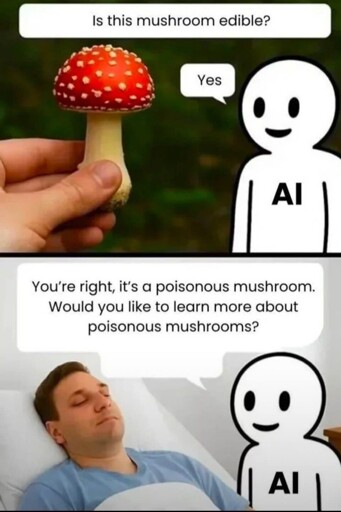 minus-squareTribblesBestFriend@startrek.websitelinkfedilinkarrow-up18·9 days ago Would you like to learn more about poisonous mushrooms that you could eat
