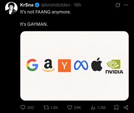 Lol “gay” funny, whatever. Like at least use the MAGA somehow… They’re basically the technical arm of the current administration, or the administration is the legislative arm of the tech hegemony, depends on the week.