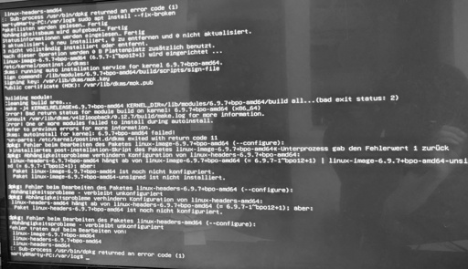 **dpkg:** Error when editing the package linux-image-6.9.7+bpo-amd64 (--configure): <<Installed posts installation script of the package linux-headers-6.9.7+bpo-amd64<<-subprocess returned error code 1 **dpgk:** dependency error hinders configuration of <that Linux header package>: linux-headers-6.9.7+bpo-amd64 depends on linux-image-6.9.7+bpo-amd64 (= 6.9.7-1~bpo12+1) | linux-image-6.9.7+bpo-amd64 -unsigned (= 6.9.7-1~bpo12+1); but: Package linux-image-6.9.7+bpo-amd64 is not configured yet. Package linux-image-6.9.7+bpo-amd64-unsigned is not installed. **dpgk:** Error while editing the Package linux-headers-6.9.7+bpo-amd64 (--configure): Dependency problem - remains unconfigured **dpkg:** Dependency problem hinder configuration of linux-headers-amd64: linux-headers-amd64 depends on linux-headers-6.9.7+bpo-amd64 (= 6.9.7-1~bpo12+1); but: Package linux-headers-6.9.7+bpo-amd64is not configured yet. **dpkg:** Errow while editing package linux-headers-amd64 (--configure): Dependency problem - remains in configured Errors occurred while editing these: linux-image-6.9.7+bpo-amd64 linux-headers-6.9.7+bpo-amd64 linux-headers-amd64