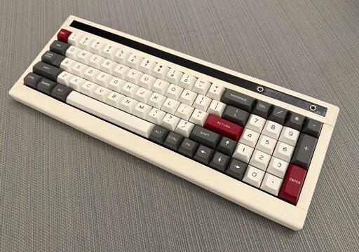 I had spare PCBs left over from an earlier project. I got the Signature Plastics DSS Honeywell keycaps on sale from a vendor who was closing down. I made the plate design using online tools, then cut it and the bottom plate on my home laser. I designed the 3D-printed case to look like the original terminal keyboards that inspired the keycaps. I used black switches because a heavy linear feels right for something like this. Firmware is QMK/VIAL. More info here. There’s much that could be better, but I’m pleased with how it came out.