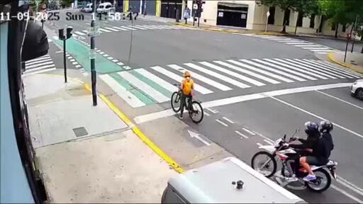 This is the moment a quick-thinking female Russian tourist took down a phone-snatcher in Argentina. Video posted by journalist Gonzalo Benitez shows the incident on November 9 when two thieves snuck up on the 33-year-old woman while she was on a bike waiting at a junction in the capital Buenos Aires. As they grab her device, she manages to wrestle one of them off the bike and hold him until Good Samaritans rush to her aid and help restrain him until the police arrive. Officers were also able to trace the offender who fled on the bike and discovered 10 cell phones at the property where he was arrested.
