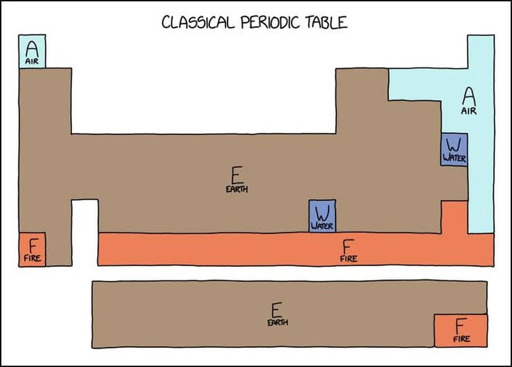 If “Fire” is supposed to represent radioactive elements, quite a few corrections would be necessary.
