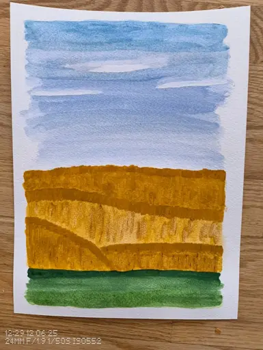Don’t paint in outlines, it flattens the image. Sometimes clarity in front and fuzzy as it goes to the background will give illusion of depth. Check some photos of rolling hills and how the shading of light falls on them.
