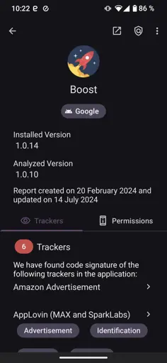 According to the tracking scanner Exodus (can be found on F-Droid), which keeps an updated database on trackers and runs your installed app against its register, you can track what apps are tracking you and clues of how. Saw that Boost is tracking me and uninstalled it and went straight to Jerboa. Jerboa is pretty similar to good ole’ RedditIsFun-app and easy to use, so I am personally recommending it.