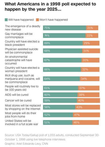 I’m curious about a reverse poll. What do Americans in 2025 expect to happen in 1998?