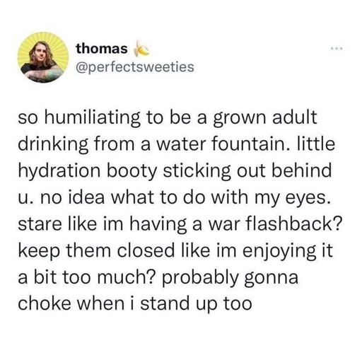 minus-squareNannerBanner@literature.cafelinkfedilinkarrow-up8·16 days agoAre they the ‘touch the handle, gentle arc across’ kind, or the ‘sensor begins smooth laminar flow stream into bottle’ kind? Because the first should be banned, ugh (I mean, not really, I still use the ones at the park), and the second is amazing.