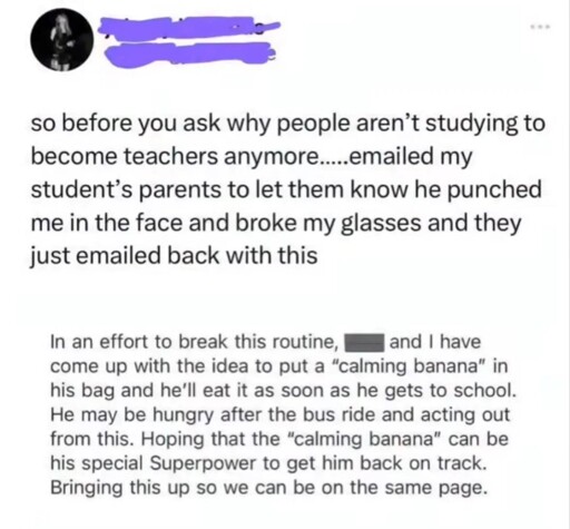 Also, discipline is tricky; parents have to use more than punishment in their toolbox, like praise for good work, modeling kindness, etc., and avoid modeling physical punishment since that tends to be the main reason a kid hit other kids… although I doubt the banana parents hit their kids.