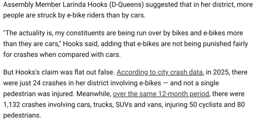 This politician is a jackass, but I do wish there was a bit more bylaw enforcement being directed at e-bikes and scooters. I can’t count the times I’ve almost been smoked by one on the goddamn sidewalk, or been sideswiped by what is essentially a silent motorcycle in a bicycle lane. Especially dangerous when they’re so favored by delivery app couriers who are also incentivized to rush at high speeds.