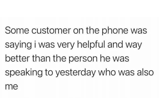 In their defence its also a lot easier for me because I’m not in a call center, my calls arent recorded and I dont have scripts or churn times to adhere to. Customer service in a call center must absolutely be someones definition of hell.
