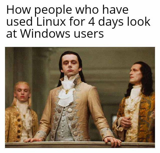 arrow-up11.63KimagePeasants...lemmy.worldekZepp@lemmy.world to linuxmemes@lemmy.worldEnglish · 7 days agomessage-square178linkfedilink