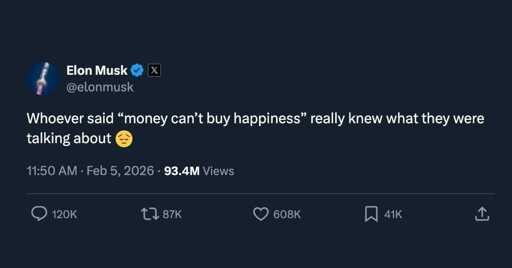 Elon could’ve done this and make Tesla the biggest company ever. I remember when he was awesome future guy and everyone liked him. I think he got super drunk on this success and has been “chasing the high” in all the wrong ways ever since.